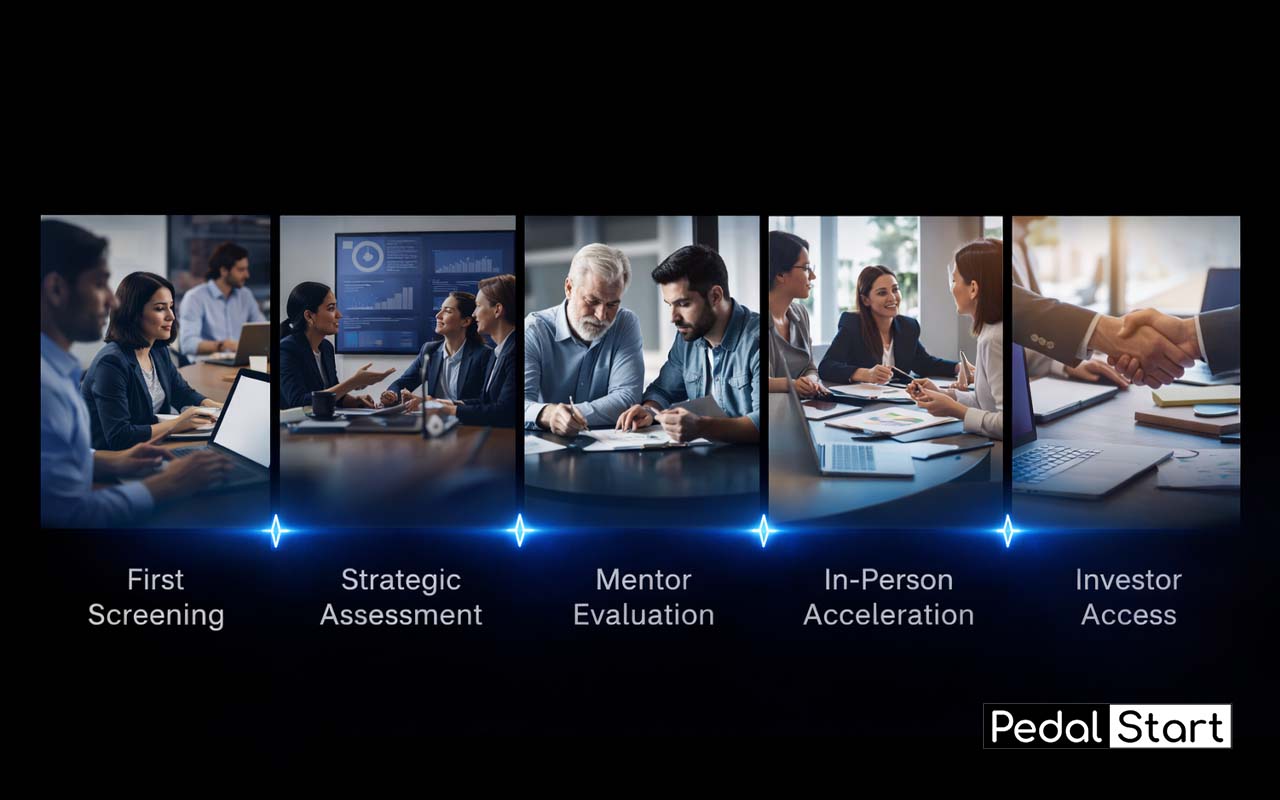 Understanding how does PedalStart work begins with its selection model. PedalStart is not an open access founder network. Startups typically enter through considered applications which get evaluated and selected startups are then called to our structured programs such as Sprint, where stage, clarity of problem, and founder commitment are evaluated.