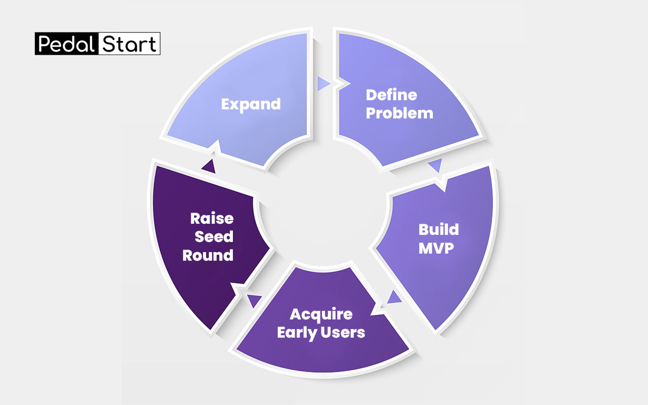 Many programs follow a similar structure. Define problem. Build MVP . Acquire early users. Raise seed round. Expand.